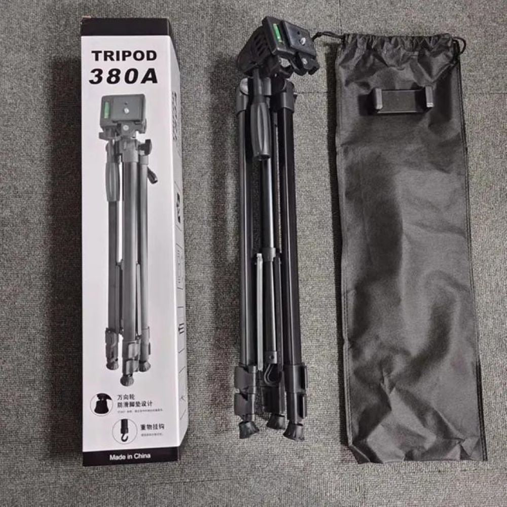 The 380A Mobile Stand Camera Tripod is a versatile & lightweight stand 🌟 designed for both smartphones & cameras 📱📷. Featuring a three-way pan head, it allows for 360° rotation & tilt adjustments, making it perfect for photography, videography, live streaming, and vlogging 🎬✨.